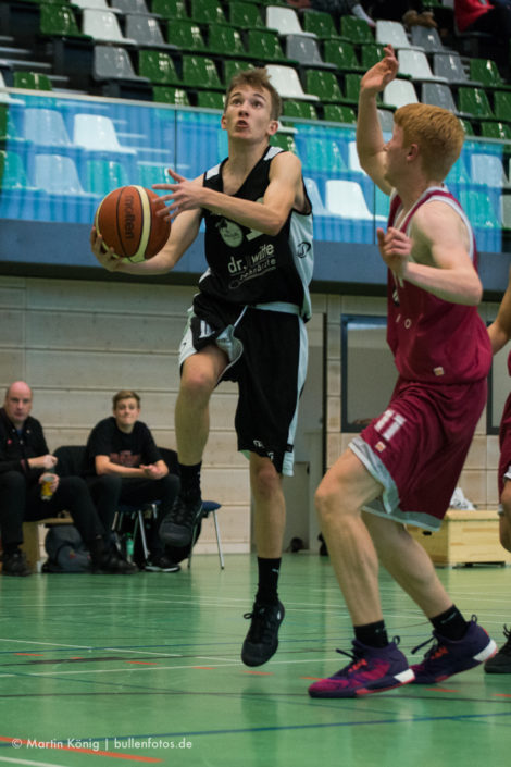 Im 1. Viertel führten die Black Bulls schnell mit 4:0, 13:5 und am Ende des Viertels mit 21:13. Allerdings hatten die großen Spieler früh mit Fouls zu kämpfen. Der Quakenbrücker Stöver (insgesamt. 21 Pkt.) war es hauptsächlich, der mit guten Einzelaktionen und einigen offensiven Rebounds sein Team im Spiel hielt. Der Gast gewann das 2. Viertel knapp mit 16:18 und verkürzte somit zur Halbzeit auf 37:31.