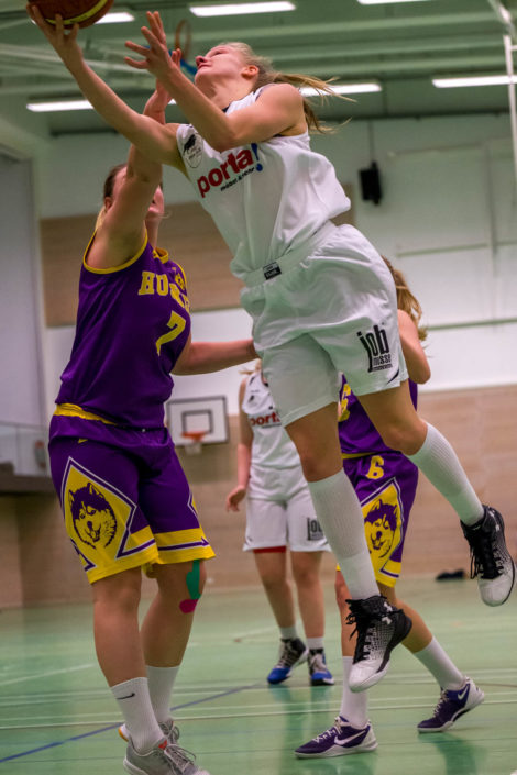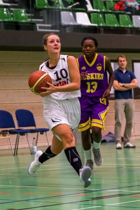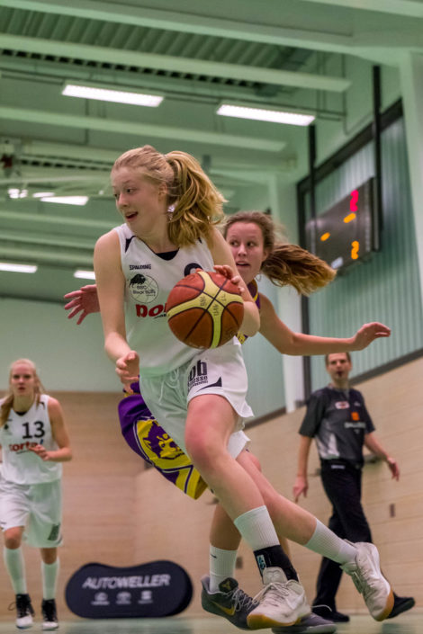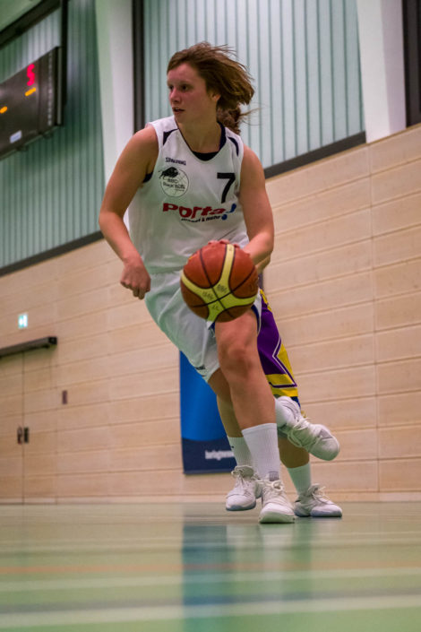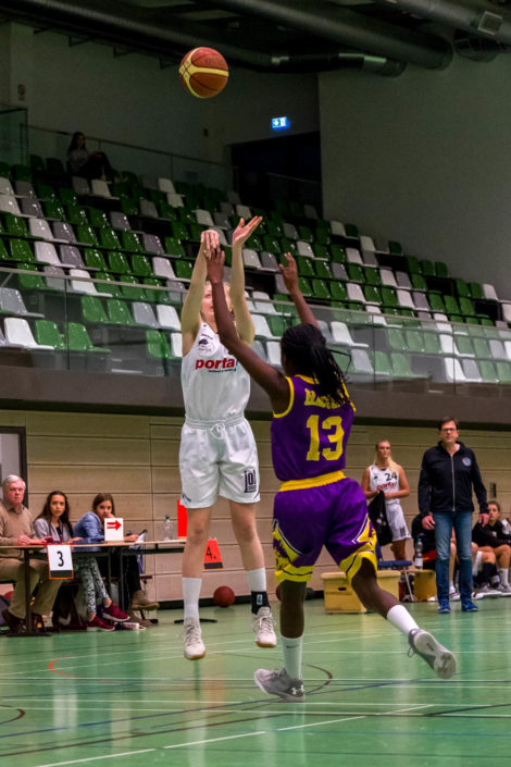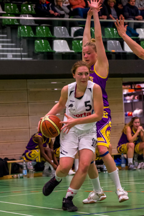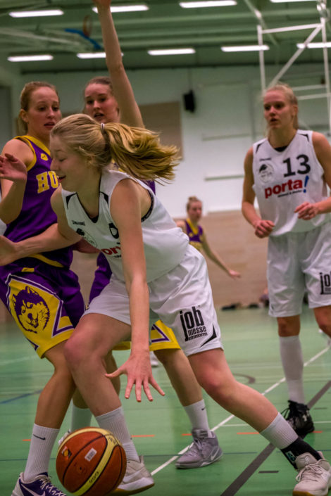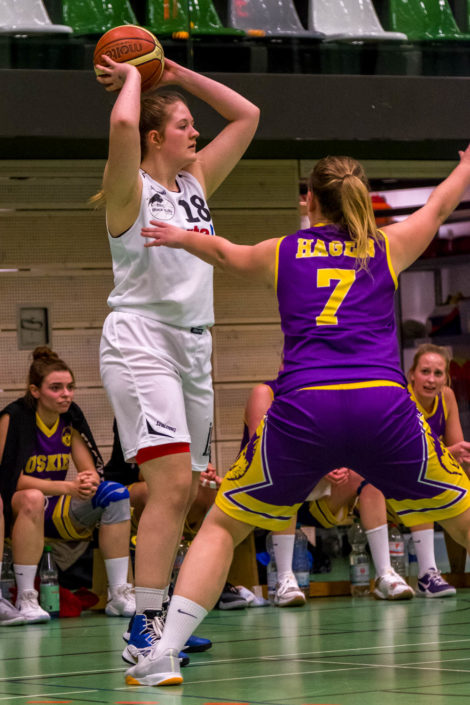 Bis zur Halbzeitpause war das Spiel zwischen den gastgebenden Black Bulls aus Osnabrück und dem Gast vom Hagener SV noch ausgeglichen (40:40), insbesondere weil BBC-Coach Jörg Scherz mit der wenig konsequenten Defense der BBC-Damen haderte. Hagen kam mit klarer Struktur über Penetration und Pass immer wieder zu freien Würfen und blieb deshalb ständig auf Reichweite. Im 3. Viertel steigerten sich die Gastgeberinnen etwas, verteidigten konsequenter und fuhren im letzten Viertel den Lohn für die erhöhte Intensität mit einem 80:69-Sieg ein! Ein besonders gutes Spiel absolvierte die Nachwuchsspielerin Frieda Bühner (15 Punkte, davon ein Dreier), die maßgeblich mit daran beteiligt war, dass ihr Team das Fehlen der Leistungsträgerinnen Julia Herrschaft, Lisa Siemund, Jördis Bunse und Maike Oesting kompensieren konnte. Ann-Sophie Ossowski (12) war mit etlichen Assists und wichtigen Punkten ebenfalls ein wichtiger Faktor im Spiel der BBC-Damen, die in Centerin Maya Girmann (33) zwar eine Spielerin hatten, die von den Huskies nie in den Griff zu bekommen war, die aber wegen vieler Trainer-Verpflichtungen in den letzten Wochen (u.a. beim Auswahllehrgang der U16-Nationalmannschaft in Bad Blankenburg/Thüringen) körperlich etwas müde wirkte.