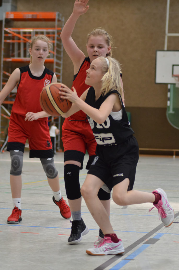 Liv 7 Punkte 1 Dreier, Amelie 4, Finja 6, Emma 2, Carlotta 2, Gesa 0, Miriam 3/1, Hannah 0, Laura 14, Luisa 2