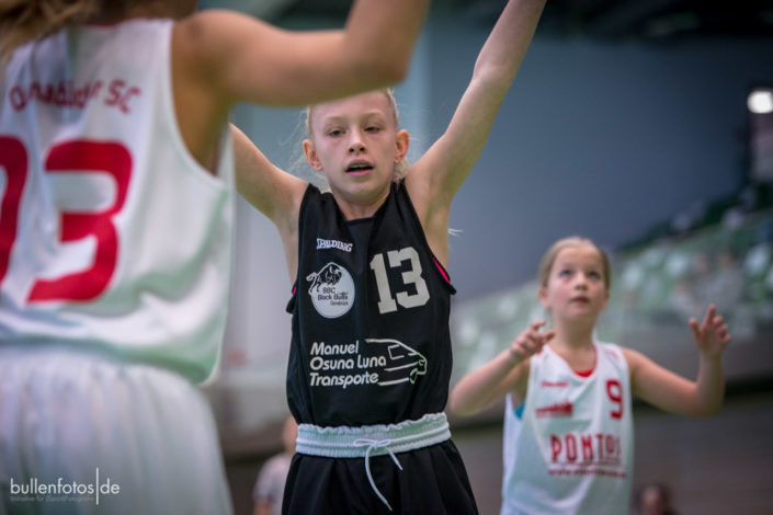 Am Sonntag folgte dann das Stadtduell der U12 gegen den Osnabrücker SC. Auch wenn der BBC etwas müde wirkte, spielten sie von Anfang an sehr souverän und starteten direkt mit einem 18-0-Lauf. Die Verteidigung wurde im zweiten Viertel noch besser und so erlaubten die Black Bulls im zweiten Viertel nicht einen Punkt. Zur Halbzeit stand es dadurch zurecht 47-4. Nach der Halbzeit wurden die BBCer wieder etwas nachlässiger, besonders im Abschluss und bei den Korblegern. Trotzdem war das Ziel die 100-Punkte-Marke fest im Blick und so schaffte es Laura Pleister kurz vor Ende der Spielzeit es den 100. Punkt zu machen und hat dadurch die Ehre am Dienstag beim Training einen Kuchen auszugeben. Zudem war sehr erfreulich, dass alle Spielerinnen mindesten einen Korb gemacht haben, das spricht für die Ausgeglichenheit in der Mannschaft.