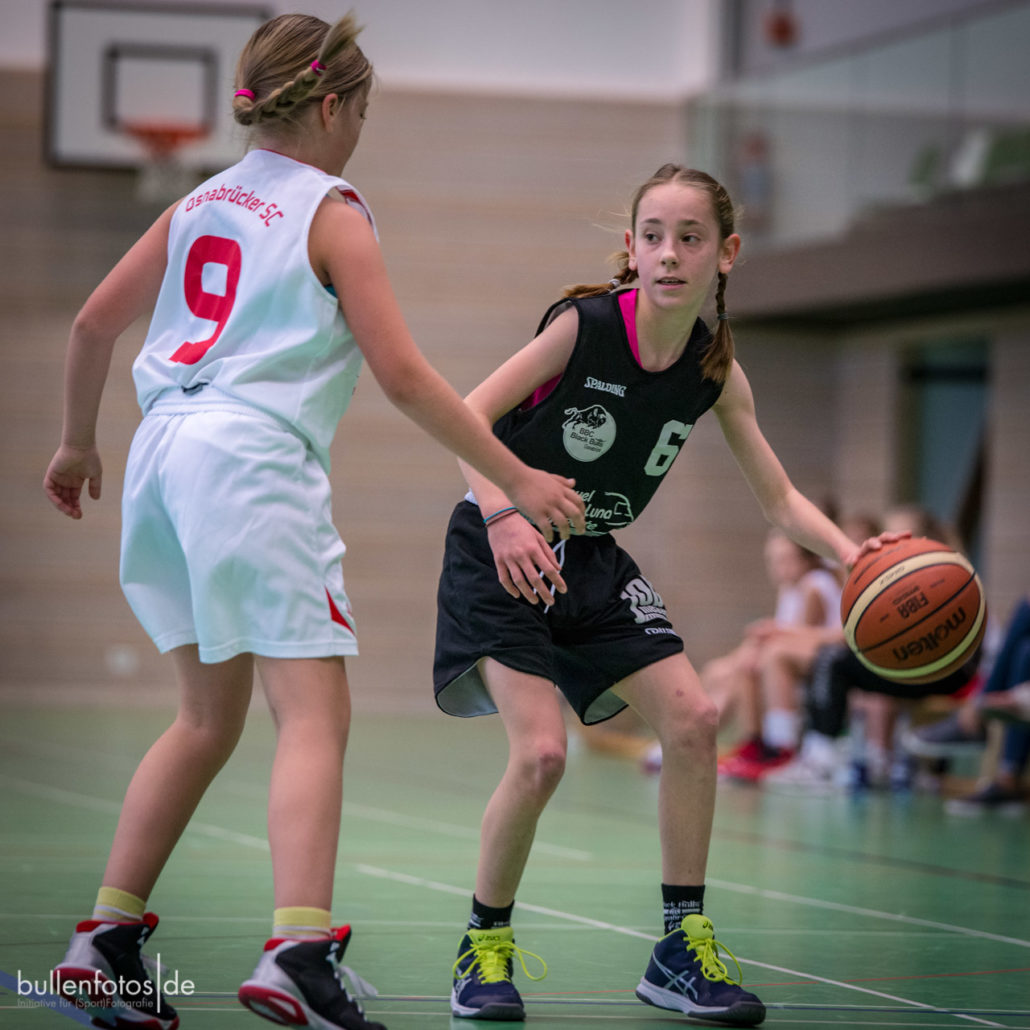 Den Anfang machte am Samstag die U11 in ihrem ersten Saisonspiel gegen SF Oesede. Oesede hatte schon zwei Siege verbucht und deshalb freuten sich alle Beteiligten auf ein enges und spannendes Spiel. Jedoch wurde früh klar, dass die gute Verteidigung und das schnelle Umschaltspiel der Osnabrücker den Nachbarn aus Oesede Probleme bereiten würde. Angeführt von Finja Wagener (25 Punkte) und Mia Bergmann (20 Punkte) arbeiteten sich die Osnabrücker ein komfortablen Vorsprung heraus und gewann am Ende deutlich mit 72-28. Ein besonderes Lob gehen an die beiden U10-Spielerinnen Jilda Gärtner und Maya Laatz, die beide eigentlich aus der U10 kommen und in der U11 aushalfen und beide einen Korb erzielten.