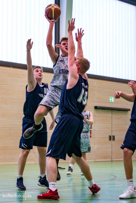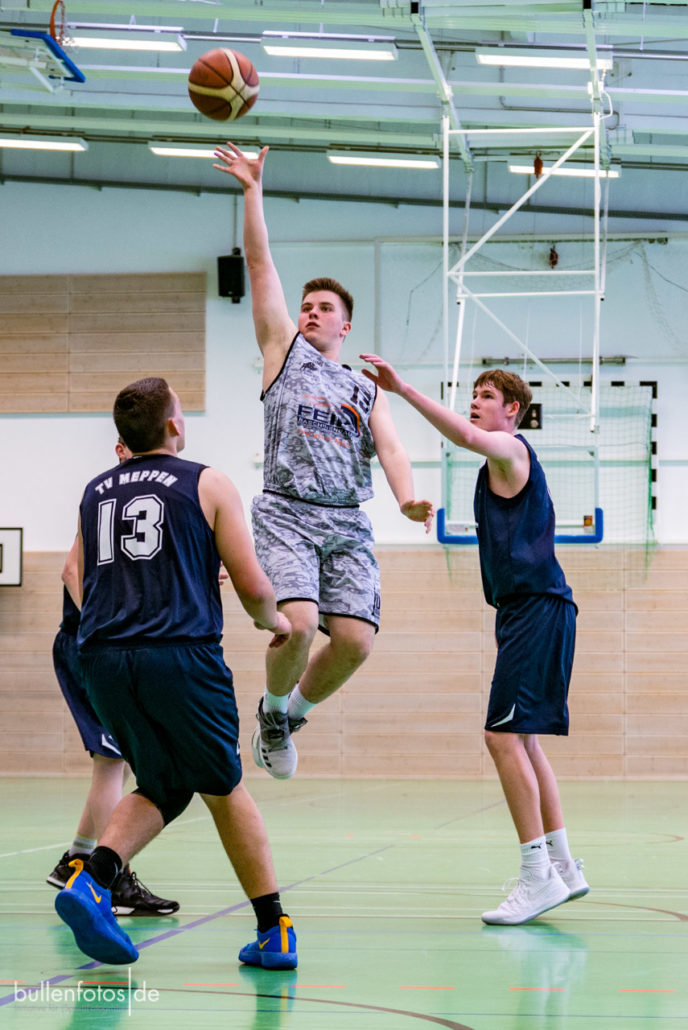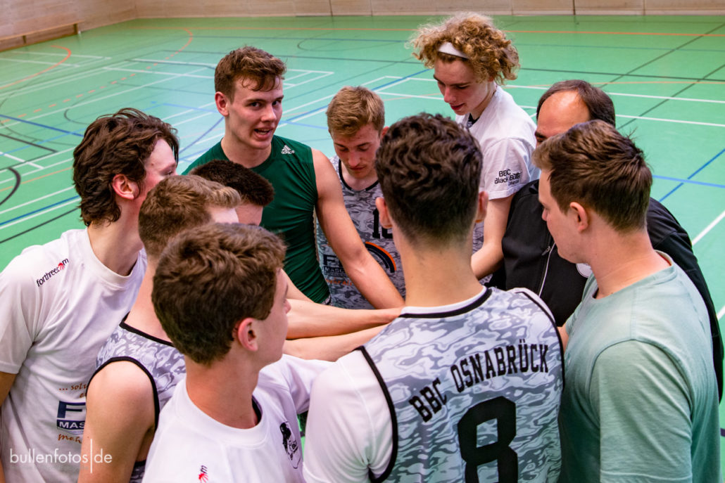 U20 Black Bulls gewinnen letztes Pflichtspiel der Saison und die Bezirksliga Meisterschaft. Das letzte Saisonspiel der U20m-Bezirksliga gegen den TV Meppen fand letztes Wochenende statt. Das Spiel war nach hinten verlegt, weil es am selben Wochenende wie die U18m-Niedersachsen Meisterschaften angesetzt war. Der BBC spielte jedoch die U20-Saison mit insgesamt nur fünf U20-Spielern und der Rest der Mannschaft war die komplette U18-Mannschaft. Freundlicherweise hatte der TV Meppen zugesagt, dass Spiel zu einem späteren Zeitpunkt auszutragen. Die Meisterschaft war den Osnabrückern sowieso nicht wegzunehmen, auch im Falle einer Niederlage. Vor dem Spiel war der BBC noch ungeschlagen, der Verfolger aus Meppen hatte bereits zwei Niederlagen. Interessant blieb also, ob die BBC Spieler ihre Dominanz in der Liga bestätigen, obwohl auch das Highlight der Saison die U20-NBV-Meisterschaften bereits stattgefunden hatte. Ob sie letztendlich die Meisterschaft ungeschlagen gewinnen würden oder doch am letzten Tag die erste Niederlage der Saison hinnehmen müssten. Die BBC Spieler haben das Spiel ernst genommen. Sie übernahmen sofort die Führung und gaben diese nie ab. Obwohl die Spieler des Meppener TV munter gegen gehalten hatten, war die Partie schnell entschieden. Alle Viertel konnten die Black Bulls klar für sich entscheiden: 15-4, 22-7 (37-11), 20-5 (57-16), 12-5. Man merkte den Osnabrückern die Erfahrung aus den höheren Jugendligen schon an. Somit gewannen die Black Bulls ihr letztes Bezirksligaspiel gegen den Zweiten aus Meppen mit 69-21. Und wurden dadurch ungeschlagener Bezirksligameister. Ein versöhnliches Saisonende für eine Mannschaft, die seit zwei Jahren zusammentrainiert hat und voraussichtlich in der nächsten Saison nicht mehr in diesen Konstellation zusammenspielen wird. Es spielten : Böhm 8, Darboven 6, Hellbaum 3, Helms 10, Dietz, Huesmann 12/2, Sluzalek 15, Scherz 9/2, Feik 6.
