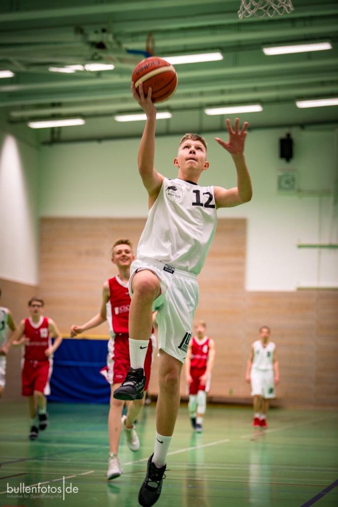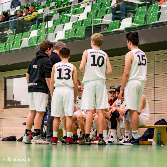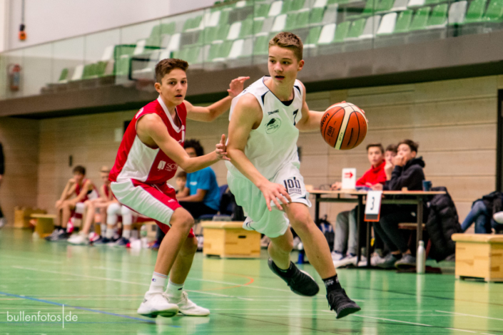 Trainer Holger Thamm, der für den erkrankten Florian Funke auf der Bank Platz nahm, setzte zu Beginn der zweiten Halbzeit erneut auf den Druck in der Verteidigung und die Jungs konnten die Partie wieder ein wenig mehr in die Hand nehmen und die Führung auf 46-24 in der 23. Minute ausbauen.  Jeder der neun Spieler kam zu Einsatzzeiten und alle Jungs konnten sich positiv in das Spiel einbringen. So kamen alle Bullen zu Korberfolgen. Das letzte Viertel ging aufgrund ein wenig fehlender Konsequenz im Angriff, Pech im Abschluss und einiger Nachlässigkeiten in der Verteidigung mit 7 – 16 verloren. Am Ende konnte der BBC einen Sieg feiern (69 – 50) und bleibt somit der konsequenteste Verfolger des ungeschlagenen Tabellenführers aus Hagen.