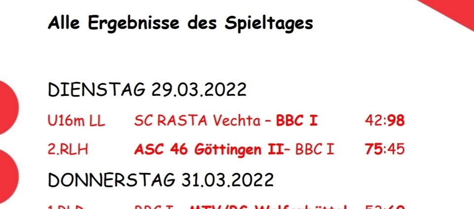 Ergebnisse vom 29.+31.03.22