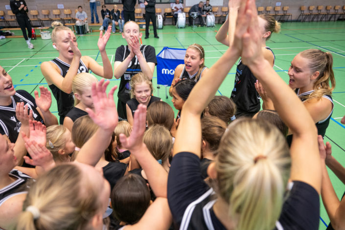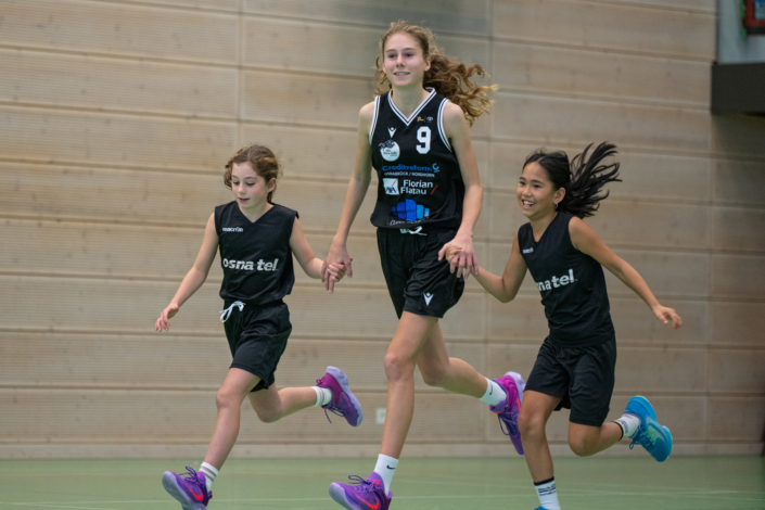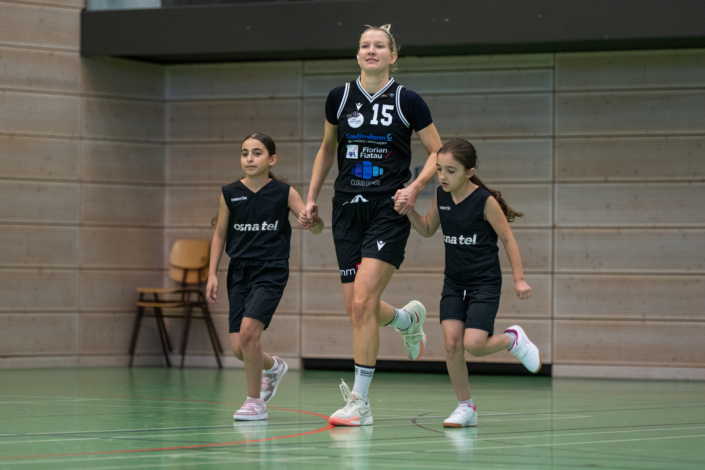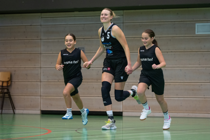 Beim BBC Osnabrück wird eine enge „Verzahnung“ des Nachwuchsbereiches mit den Erwachsenenteams großgeschrieben! So laufen bei den Heimspielen der Zweitligadamen auch die Talente von morgen mit ein! Beim Heimspiel gegen TUS Lichterfelde Berlin am vergangenen Sonntag waren wieder 15 Basketballmädchen des BBC bei der Vorstellung des BBC-Teams dabei und durften in der ersten Reihe den Applaus des Publikums entgegennehmen.