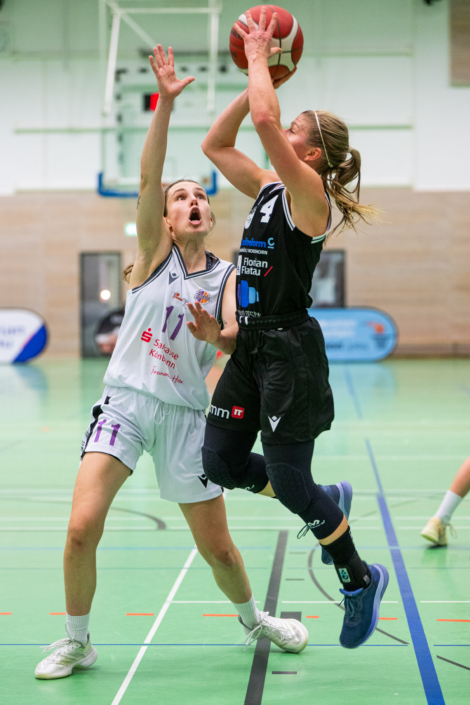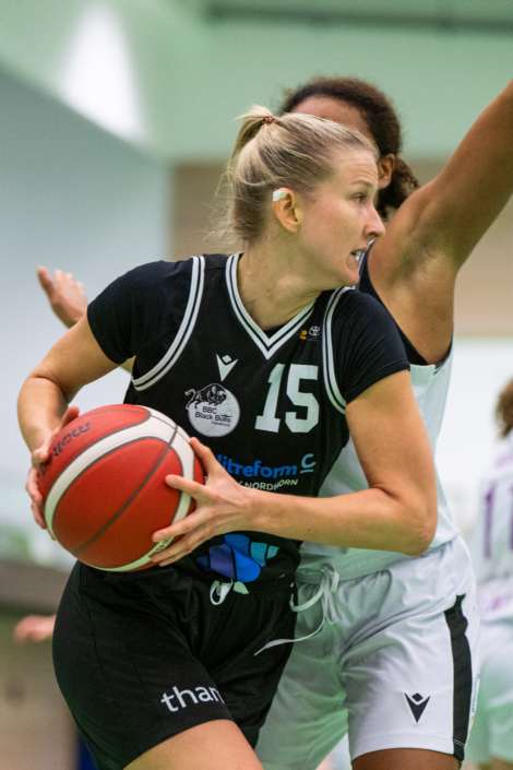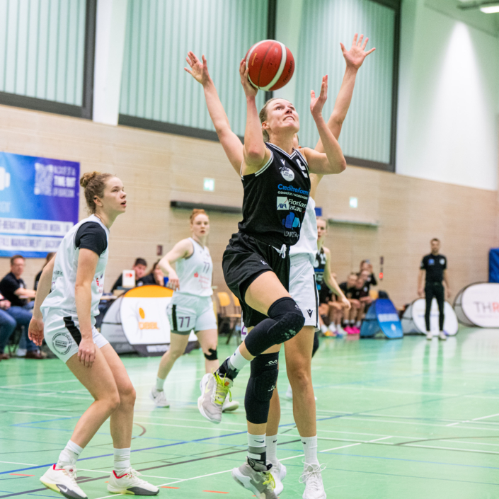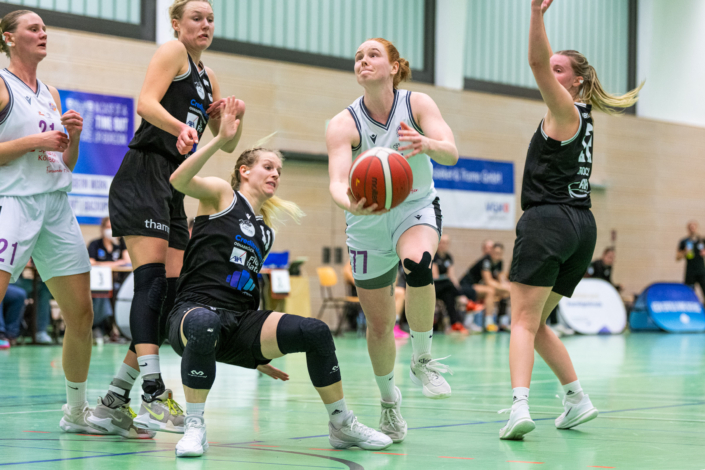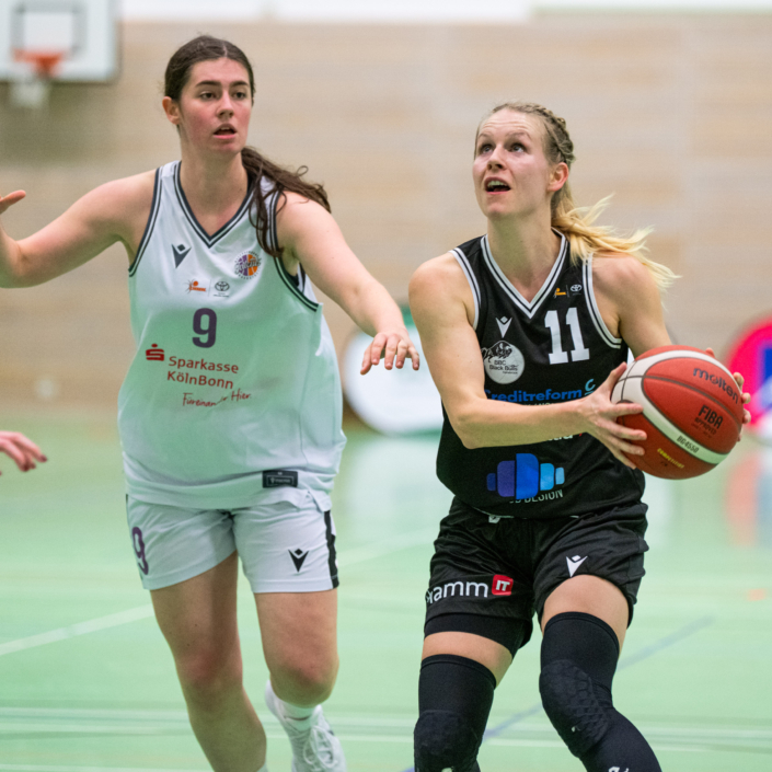 Mit einer 50:45-Führung ins letzte Viertel gingen die Gastgeberinnen ins entscheidende letzte Viertel, wobei die aufs Spielfeld zurückgekehrte Annemarie Potratz-Bramscher (16/1) und Teamkapitänen Tonia Dölle (27/1) zu den Matchwinnerinnen avancierten. Mit 5 Ballgewinnen in der Schlussphase gaben sie ihrer Mannschaft die nötige Sicherheit, um die knappe Führung nicht mehr aus der Hand zu geben. Zwar kamen die Gäste in den letzten Minuten nochmal auf 60:66 heran, doch die Osnabrückerinnen bewiesen an der Freiwurflinie Nervenstärke und trafen 14 ihrer 16 Versuche. Am Ende sicherten sich die Bulls mit 72:65 den sechsten Saisonsieg in Folge und blicken nun mit großer Vorfreude auf das erste Aufeinandertreffen der beiden bislang ungeschlagenen Teams der Liga: dem Gastspiel bei den Leverkusen Wings am kommenden Sonntag (9.11., 16.30 Uhr).