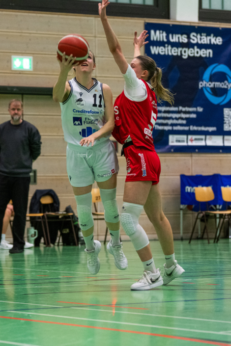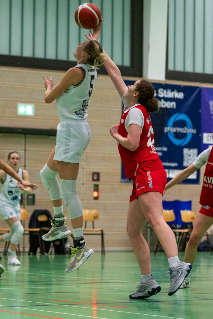 Den entscheidenden Unterschied machte schließlich die Präsenz unter den Körben. Tonia Dölle (23/1) dominierte das Geschehen mit 13 Rebounds und gab dem Spiel die notwendige Stabilität. Unterstützung erhielt sie von Emily Enochs (13/3), die nach einem heftigen Körpereinsatz einer Gegnerin bereits im 1. Viertel ausgewechselt werden musst, dann aber zum Glück nach der Pause wieder spielen konnte. Sie fügt sich immer besser in das BBC-Spiel ein, zeigte eine starke Verteidigungsarbeit und versenkte drei erfolgreiche Distanzwürfe im Korb der Gäste. Melina Hagenhoff (11/2) setzte ebenfalls wichtige Akzente von außen. Charlotte Kreuzhermes (7/1) und Annemarie Potratz-Bramscher (7) kämpften ebenso wie ihre Teamkolleginnen Michelle Müller (6/1), Katharina Hoffmeier (4), Kira Dölle (3/1), Gesa Temme-Winter, Hanne Kleihauer, Maike Hagedorn und Lotta Millich teilweise „auf der letzten Rille“, setzten aber alle wichtige Akzente im Spiel.