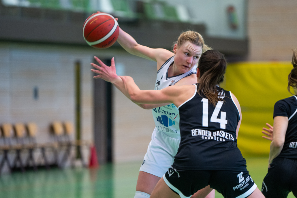Das erste Viertel ging folgerichtig mit 13:19 an die Hessinnen. Grünberg traf in der ersten Halbzeit hochprozentig von außen – fünf erfolgreiche Dreipunktewürfe bei neun Versuchen sorgten zwischenzeitlich sogar für eine Führung von 13 Punkten. Hinzu kam eine insgesamt körperbetonte Spielweise, bei der die Schiedsrichter viel laufen ließen und über weite Strecken Probleme hatten die legalen von den illegalen Körperkontakten zu unterscheiden.